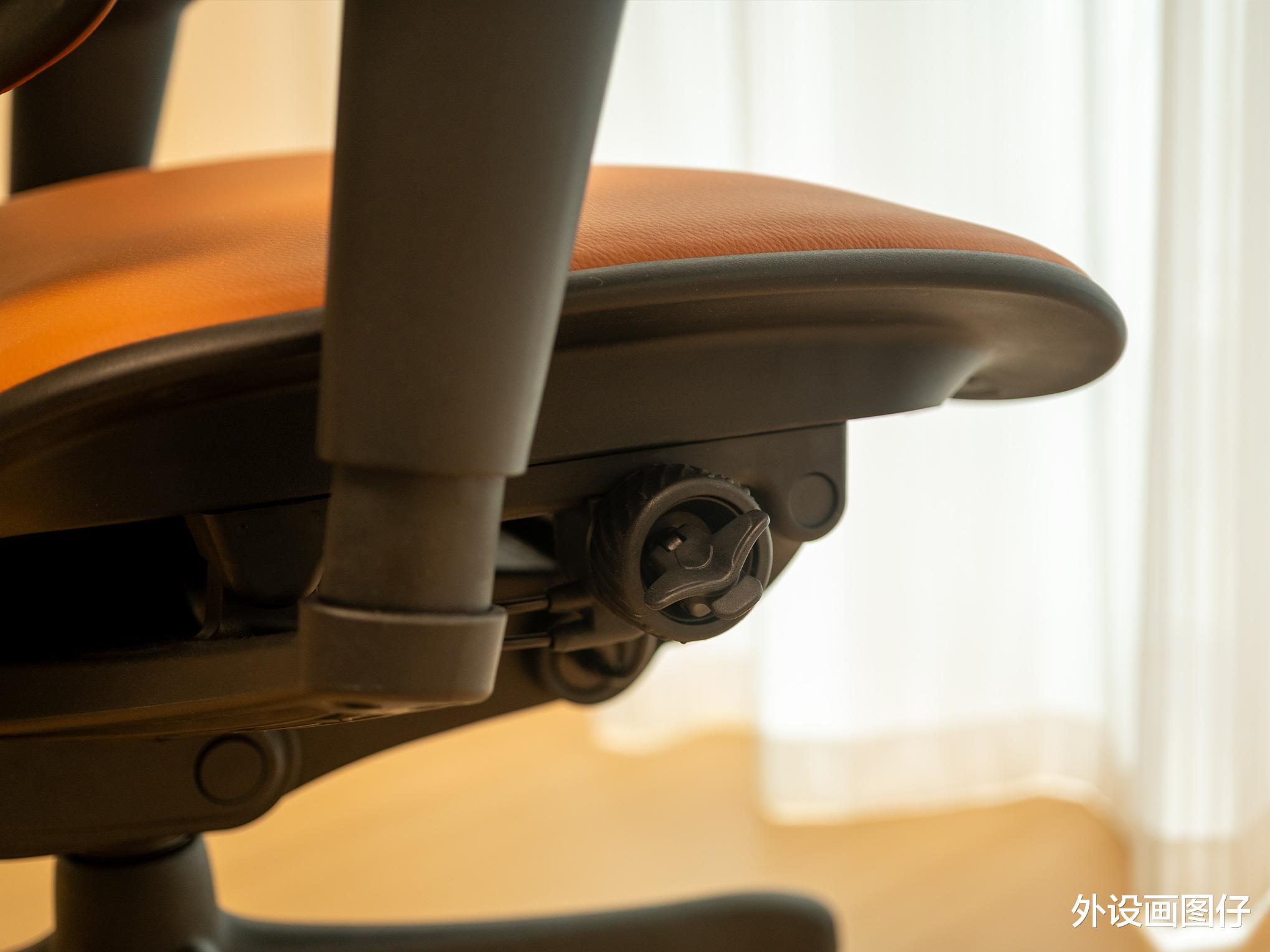 在这方面,金豪b雄鹰皮椅的人体工程学设计就完美很多,常规的坐垫升降调节是44.5-54cm,靠背上下调节是69-77cm,很适合亚洲人身材。还有细微调整,例如背部LOGO的地方有一个旋钮,可以调节腰靠的支撑力度。