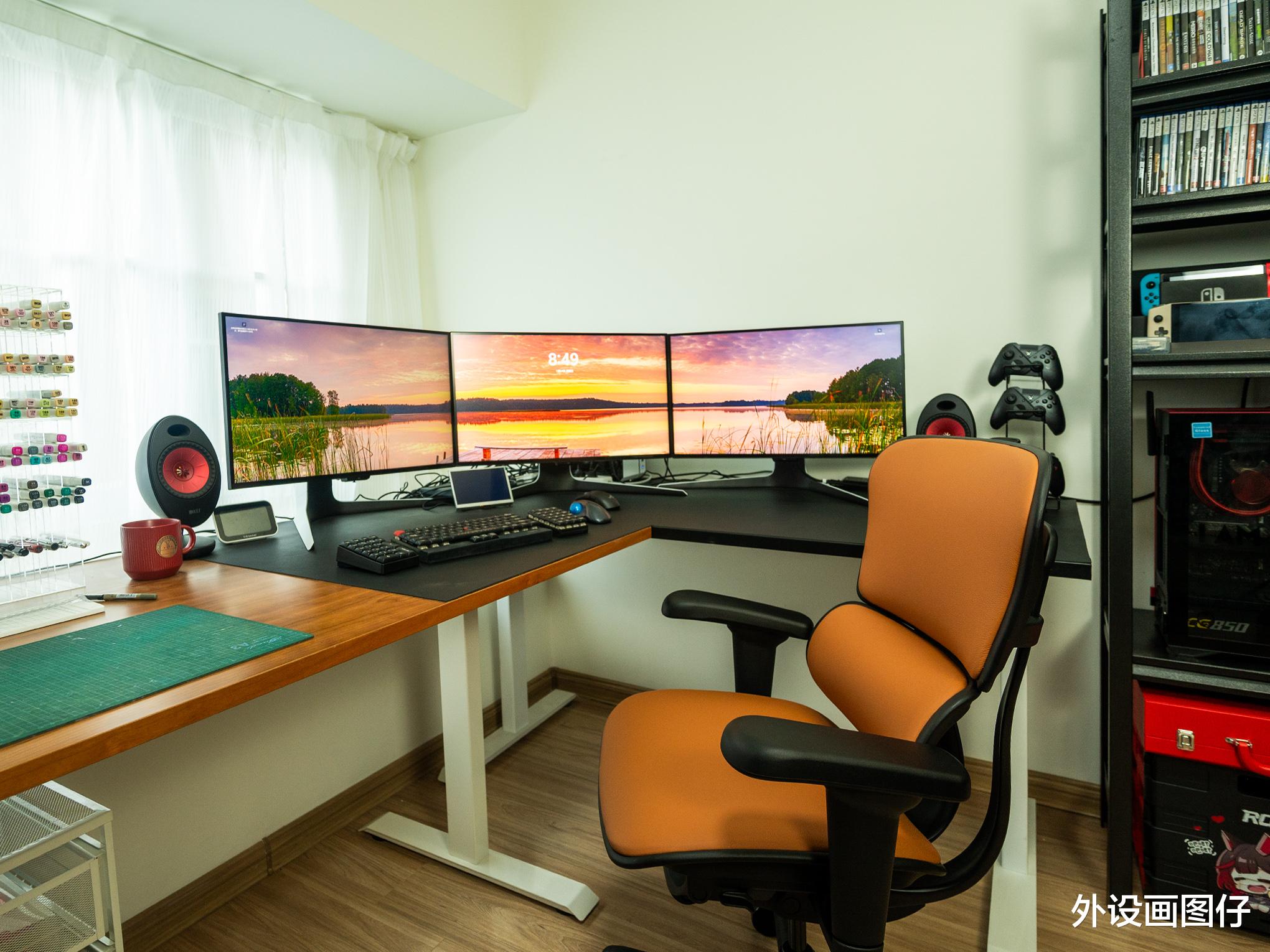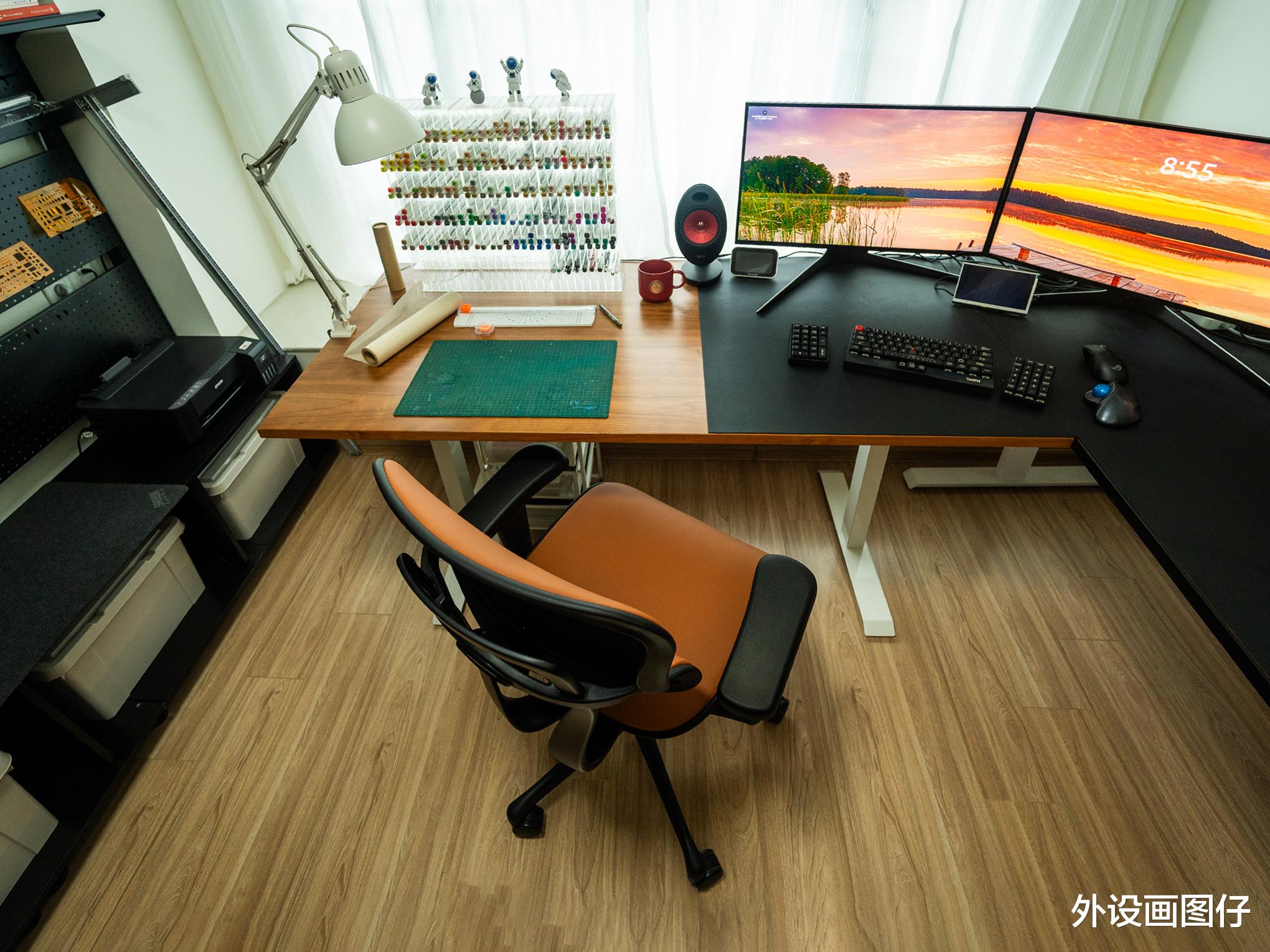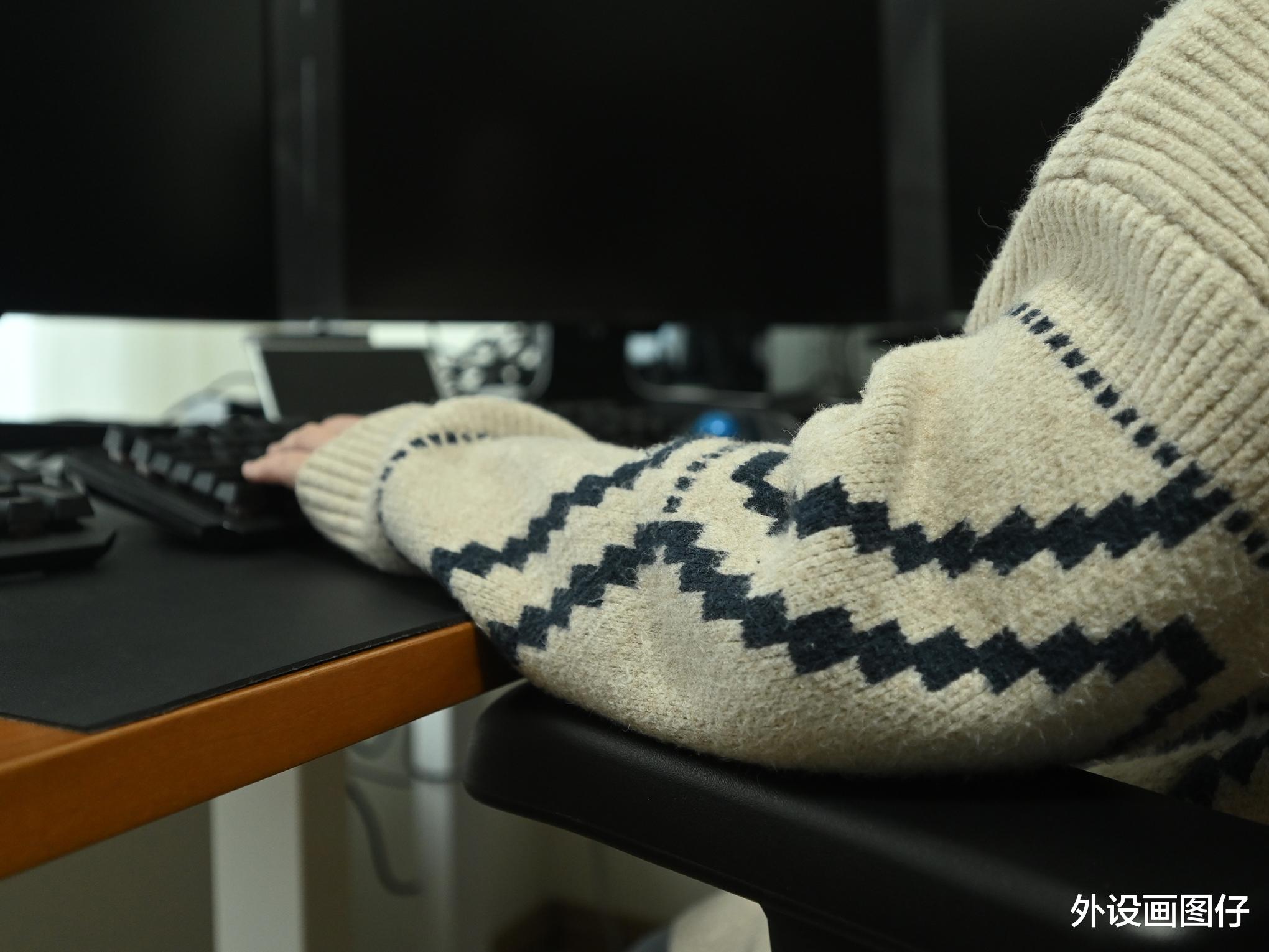 我看有些人是喜欢手肘放桌面上自然舒展,可是桌面偏硬,舒适度来说不如放扶手上合适。