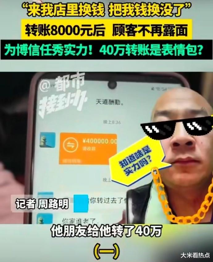 话说这哥们儿是怎么操作的呢?他先是跟牛女士搭话,说想用现金换微信里的钱。然后,他就亮出了一张看起来跟真的一模一样的转账记录截图,金额之大,40万呢!牛女士一看,这还能有假?二话不说,就把8000块现金给了这哥们儿。结果,等牛女士回过神来,发现那40万根本没到账,骗子早就没影儿了。