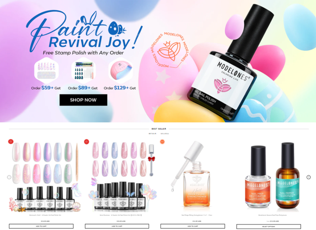例如主攻欧美市场的国产品牌Modelones,其主打产品为指甲粉、指甲油、指甲凝胶等,价格上也同样走性价比路线,售价多在15-35美元之间。凭借多重优势,Modelones在亚马逊上常驻类目热销榜,深受广大消费者的喜爱。