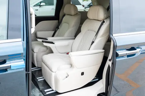 得益于智能后轮转向系统的加持,这台5.315米长的庞然大物竟能实现双车道一把掉头的神操作!大到5度的后轮转向角度彻底改写了MPV笨拙刻板的印象,无论是狭窄巷弄还是会车场景都能游刃有余。搭配百万级魔毯空气悬架,舒适性、通过性与操控性达到恰当的平衡,重新定义了MPV的驾驶乐趣。