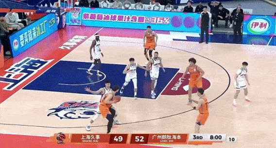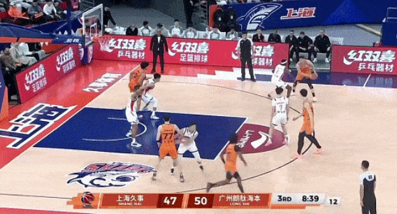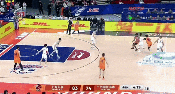 偰李永炜分球到底角袁堂文,袁堂文沿底线突破时,王哲林在弱侧启动,偰李永炜也跟随下切,接到回传球后再分王哲林,先晃开对手,再扣篮终结