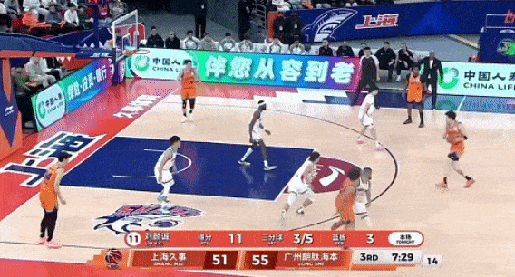 洛夫顿持球过半场时,王哲林还在底角站着,等洛夫顿突到三分线时,王哲林偷偷溜到篮底,并且伸手要球,接球轻松扣篮得分