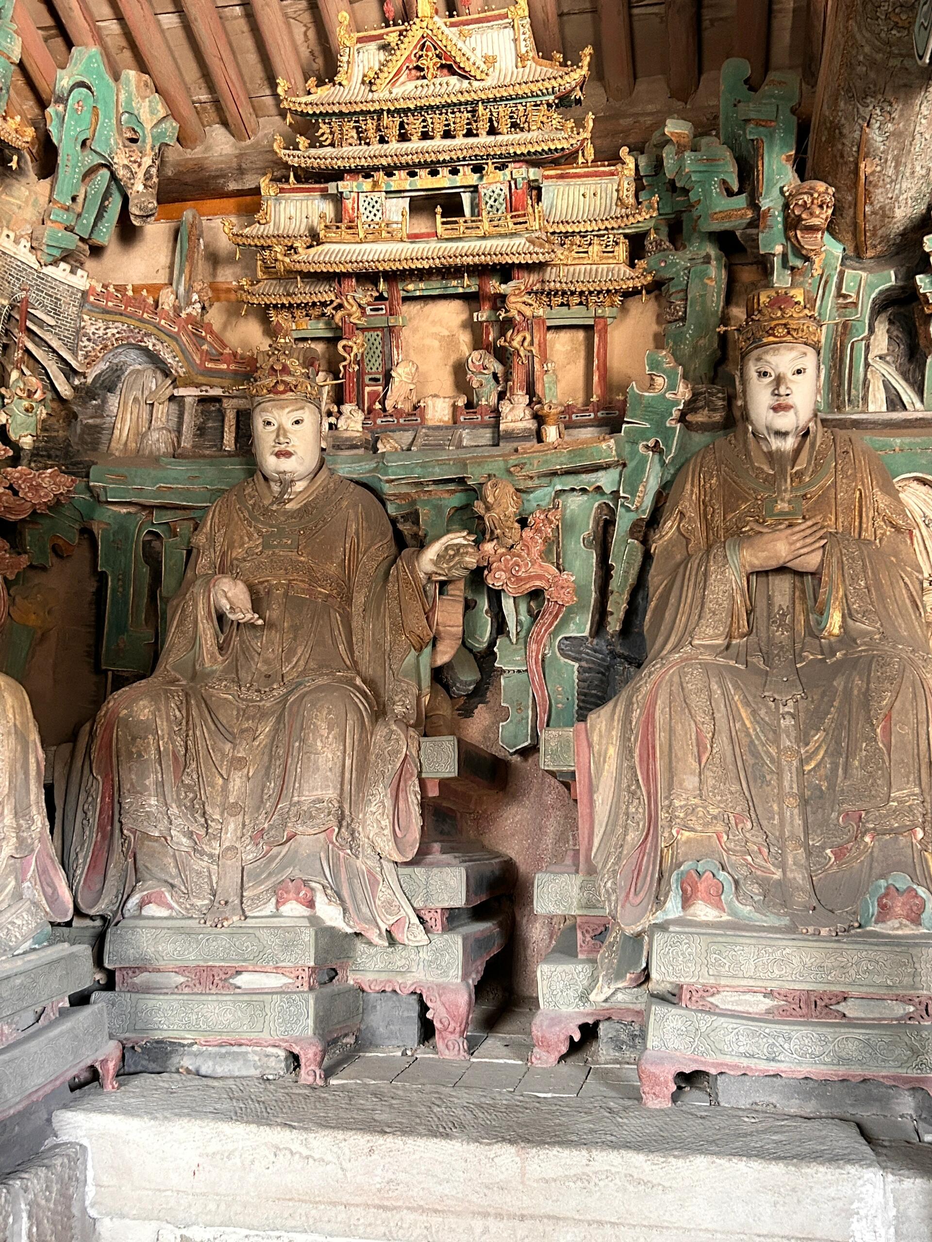 出殿时再回头,十六尊像在暗处立着,像一群守着秘密的老人。他们见过明清的香客,见过民国的兵匪,见过现在举着手机拍照的游人。身上的颜料掉了就掉了,麻丝断了就断了,反正那点从人间帝王身上借来的风骨,早被工匠捏进了泥里,成了比颜料更经得住时间的东西。这大概就是十帝殿的妙处:它不装神弄鬼,就把人间的模样拆了,重组成阴曹的样子,让每个进来的人,都能在那些泥塑的眉眼间,看到点自己的影子。
