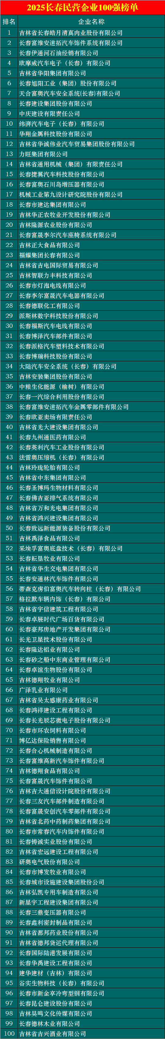 发布“2025长春企业100强、民营企业100强”榜单及发展分析报告