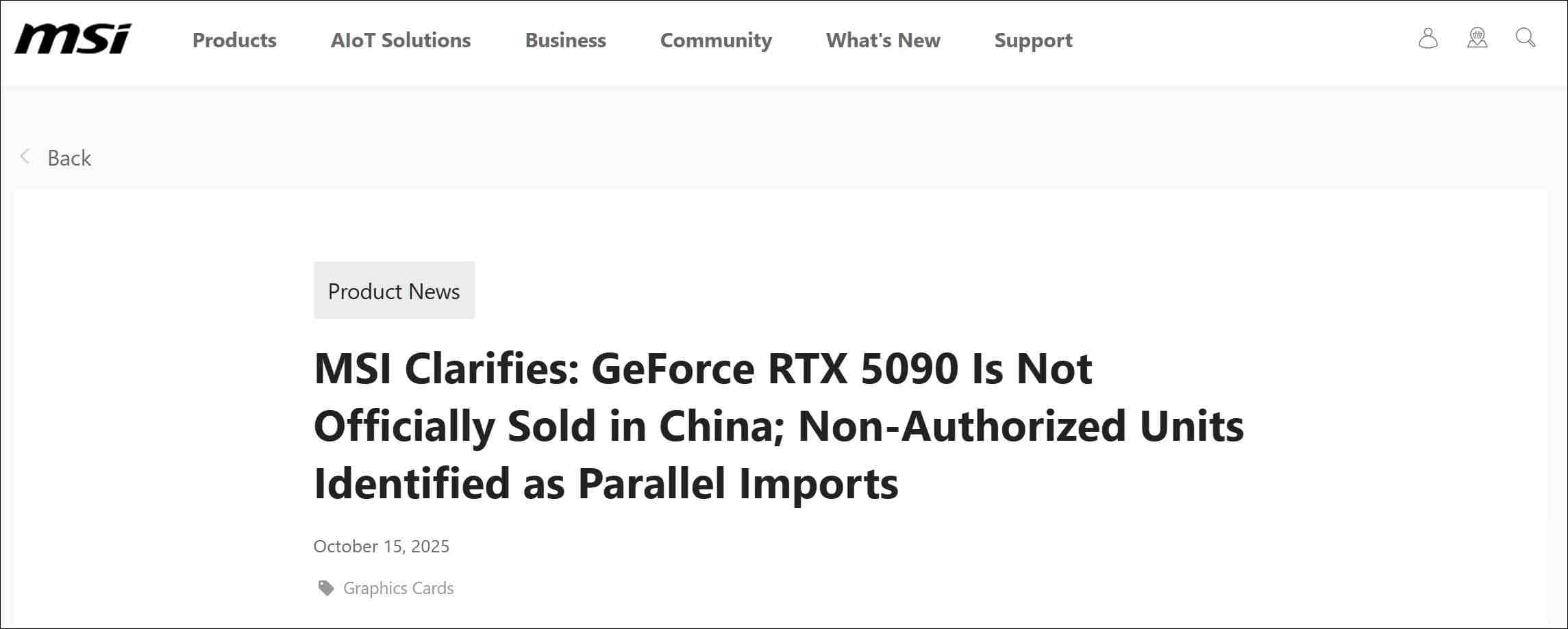 微星赶紧在官网发了声明,说他们从来没在中国卖过RTX 5090,市面上那些都是没授权的水货,买了出问题找谁都没用,没保修,也没人管技术支持,听着像在推责任,可他们也是被逼的,毕竟跟英伟达是合作关系,不能碰出口规定,中文官网居然没同步更新,用户更糊涂了,这波操作,说白了就是自保,真没想着帮消费者。