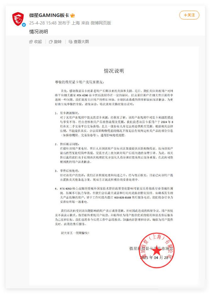 这事儿也不是第一次了,今年四月微星因为不给二手4090显卡保修被骂上热搜,客服说没购买凭证就不认,用户挺生气,后来官方道歉了,微博却悄悄删了,这不光是微星一家的事,整个行业对二手市场都挺硬气,微星自己日子也不好过,前八个月营收才三百多亿,华硕和技嘉快翻了一倍,市场说话的分量小,做事就只能更小心,怕惹麻烦。