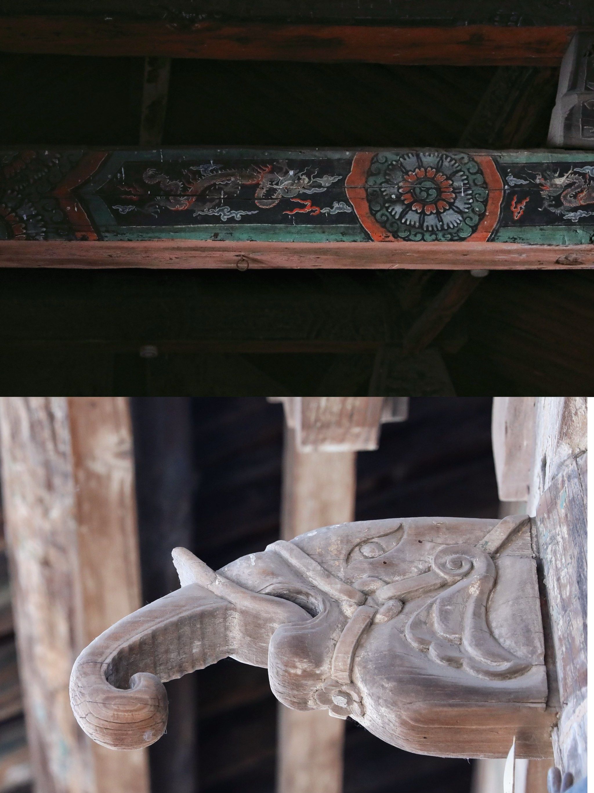 减重设计:殿顶不用琉璃瓦而用青灰筒瓦,减轻自重同时保持排水顺畅。