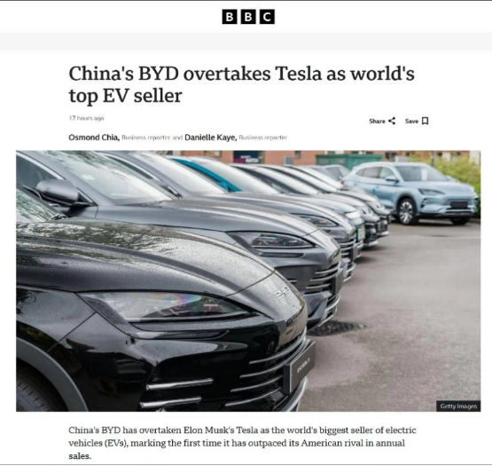 此次超越不仅是企业间的竞争更迭,更被视为中国汽车工业在全球市场角色深化的标志。国际媒体如CNN、BBC等纷纷关注报道,指出以比亚迪为代表的中国汽车品牌,正凭借电动化、智能化及供应链体系化优势,推动全球汽车产业向新能源时代加速迈进。