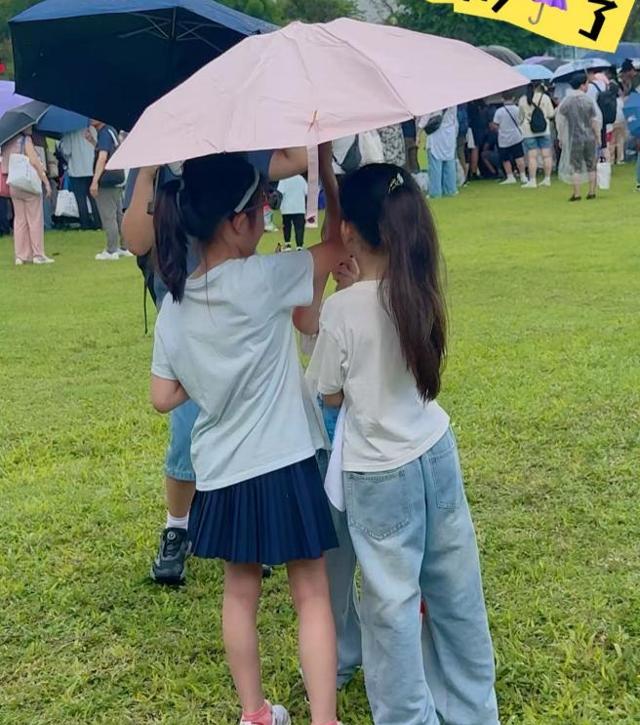 好在郭富城长相很显年轻,与他们在一起也看不出年龄差。方媛的两个女儿都长高了不少,孩子们都穿着白色T恤搭配牛仔裤,很休闲随意。