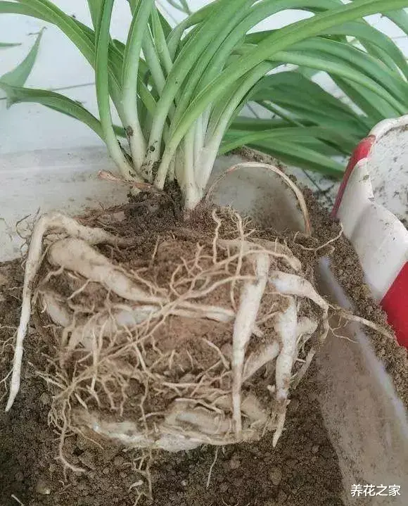 吊兰是日常生活中极为常见的盆栽植物,好多花友家里都有种植。市面上的吊盆品种繁多,比如金边吊兰、银边吊兰、彩叶吊兰、金心吊兰等等。无论哪一种吊兰都有着非常强大的根系。它的根系短而粗,好似一个个个小白萝卜。生长速度极快,差不多一年左右就会把整个花盆占满,将土壤中的养分吸收殆尽。如果第二年不换盆,不给土壤补充新养分,会严重干扰吊兰后续生长。