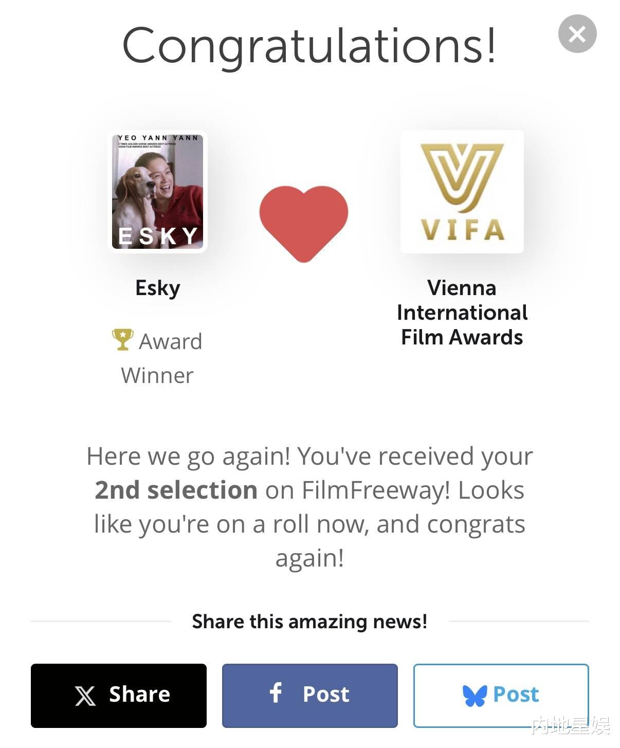 近日,由王冠逸执导的短片《ESKY》在维也纳国际电影奖(Vienna International Film Awards 2025)中荣获“最佳导演奖”,这也是该片继今年5月在好莱坞最佳独立电影节获得“最佳新晋导演奖”后,拿下的第二座国际奖杯。接连获得国际影坛的专业荣誉,也是对王冠逸跨界执导的高度认可。