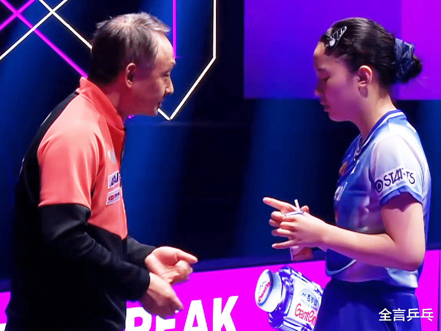 第二局张安开局领先没把握住,紧接着被追至7-7平后出现崩盘,张本美和抓住机会再得3分以10-7反超对手,但很快错失2个局点于是暂停下场与父亲张本宇沟通。重返赛场后,日本小将做出改变以逆旋转发球逼张安出现回球质量不高的情况,随后强势抢攻以11-9再下一城。