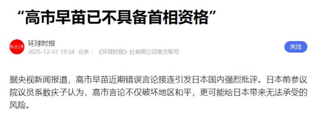 高市早苗下台了?前段时间高市早苗在国会上发表的不当言论经过发酵,现如今在日本国内对其的反对声浪四起,立宪民主党、日本共产党等在野党高层更是纷纷发声批评。