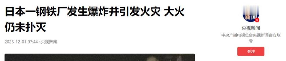 钢铁厂被炸、高市早苗被政客“开除”首相身份、拒绝调查美军“放毒”、日本议员团请求访华……