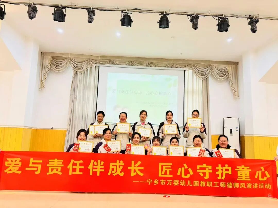 “教育的根基在于师德,师风是教育的灵魂。”为弘扬高尚师德、凝聚教育初心,宁乡市万婴兆基幼儿园举办1场主题鲜明的师德师风演讲比赛。本次比赛共有12位教师参赛,参赛教师依次登台,以真挚的语言、鲜活的教育案例,分享自身在幼教岗位上的坚守与感悟。教师们的讲述情真意切,充分展现了新时代幼儿教师的责任与担当,让在场全体教育工作者深刻体会到幼教事业的价值与意义。
