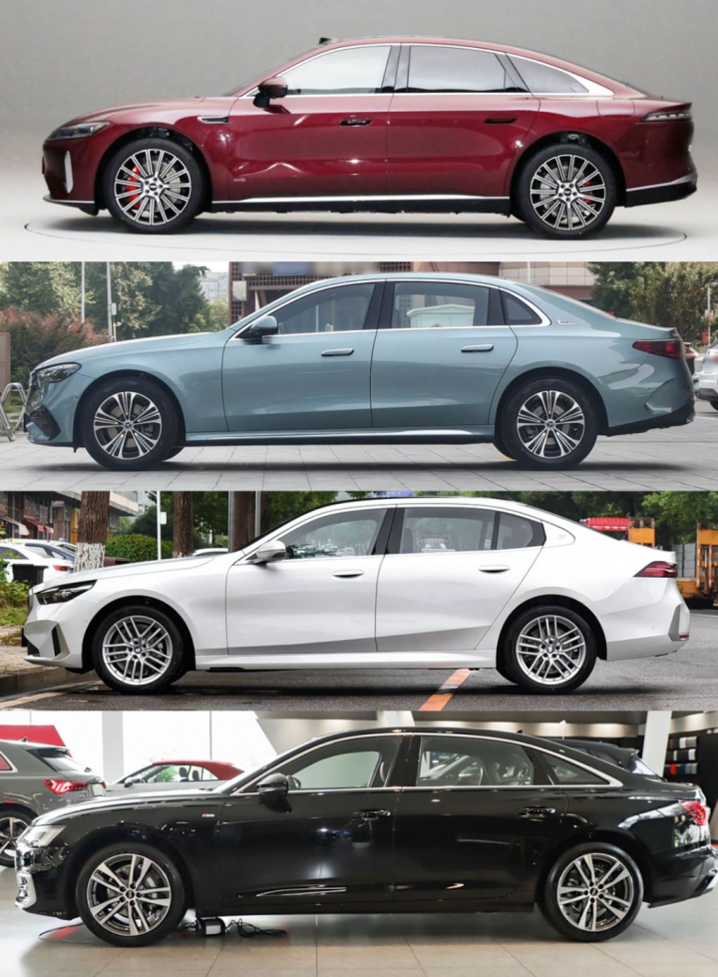 外观造型,见仁见智不多说,就从尺寸方面来看,四款车型尺寸最长的还得是国内加长版的宝马5系,5175mm车长,位居四款车型第一,然而宽度数据,风云A9L表现第一,轴距参数,风云A9L凭借3米整的轴距,实力不输奥迪A6L以及奔驰E长轴版。
