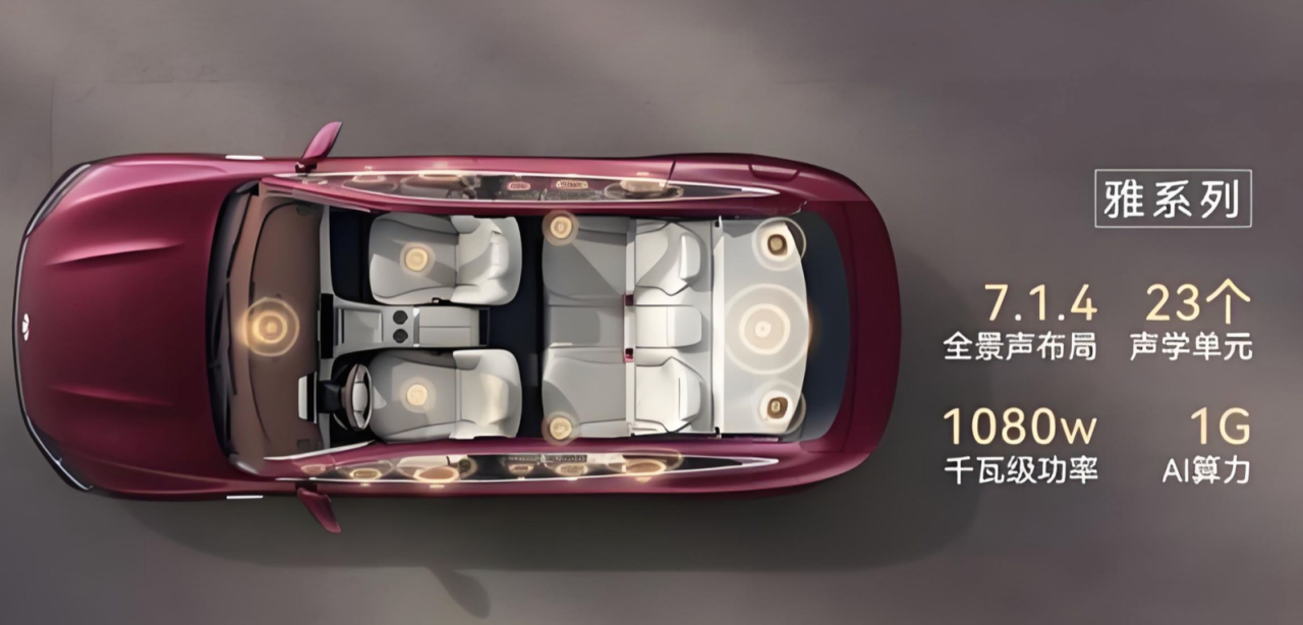 而奇瑞风云A9L配备了23扬声器伯牙之音音响,同时凭借新能源车优势,还搭载了1080W功放,可以实现更为出色的环绕立体声。