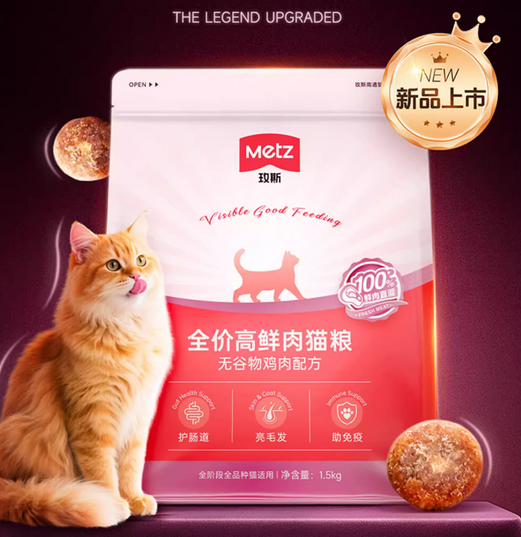 猫粮多少钱一袋?适口性的好坏会直接体现在猫咪的进食量上,适口性差的猫粮,猫咪往往吃的少甚至拒食,长期吃这些猫粮可能会导致猫咪厌食,引发消化系统紊乱。而适口性好的猫粮,猫咪不仅会主动吃,吃的时候心情也会很好,这种积极的情绪反馈有助于和铲屎官建立更深的情感联结,让猫咪更加信任我们。因此,我们要选择猫咪爱吃的猫粮,比如高鲜肉猫粮,这类猫粮会散发天然肉香味吸引猫咪进食,是营养和健康兼备的选择。