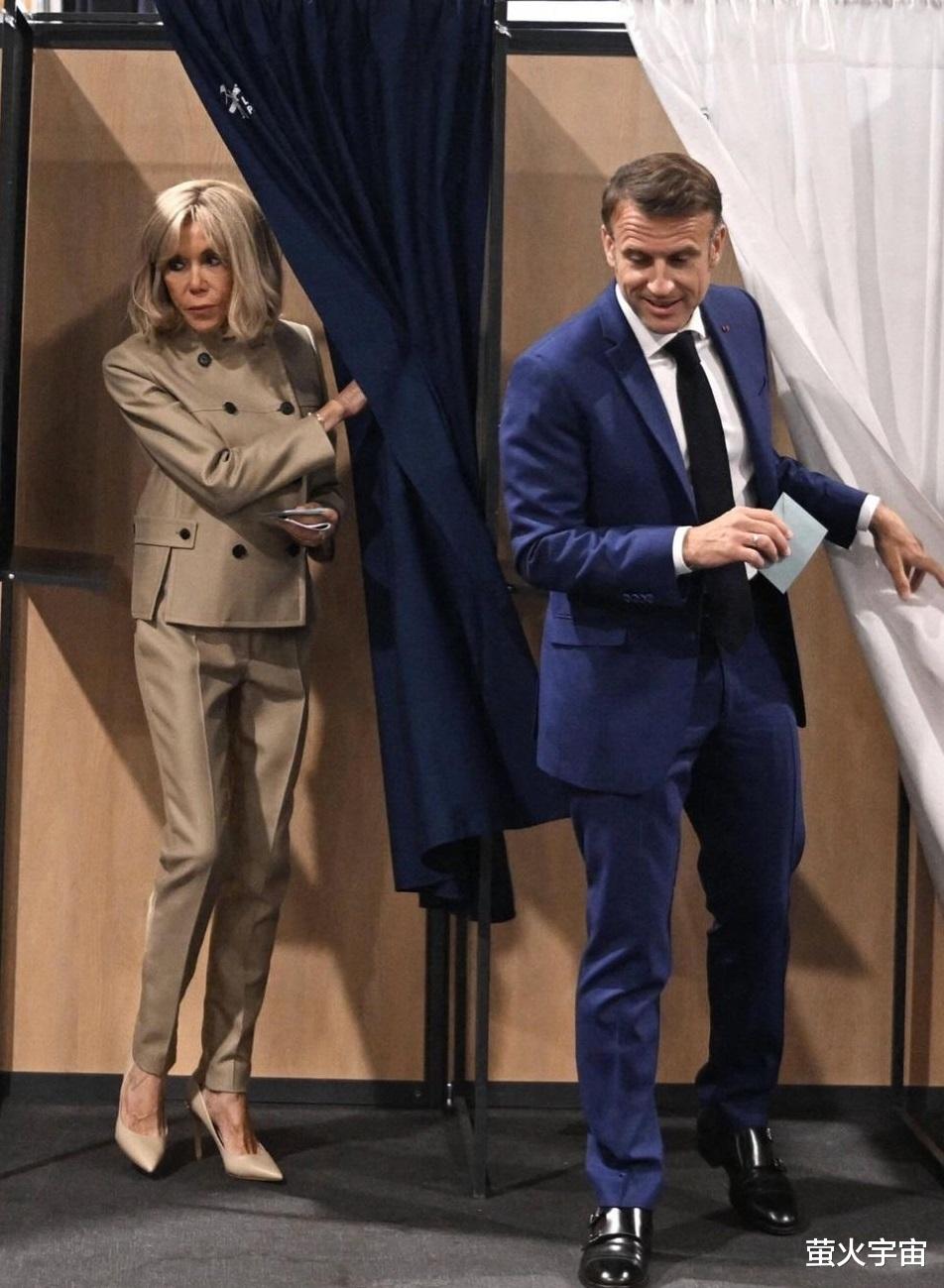 虽说是夏天,但当地的气温还是有点儿低(最高气温不到20摄氏度),这一点从马克龙系着长长的围巾就可以知道了(他和布里吉特在去投票站时都换了衣服)。
