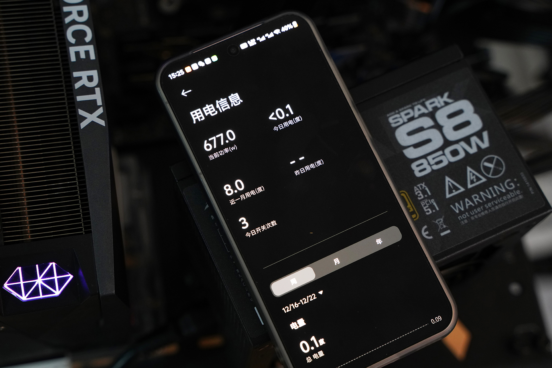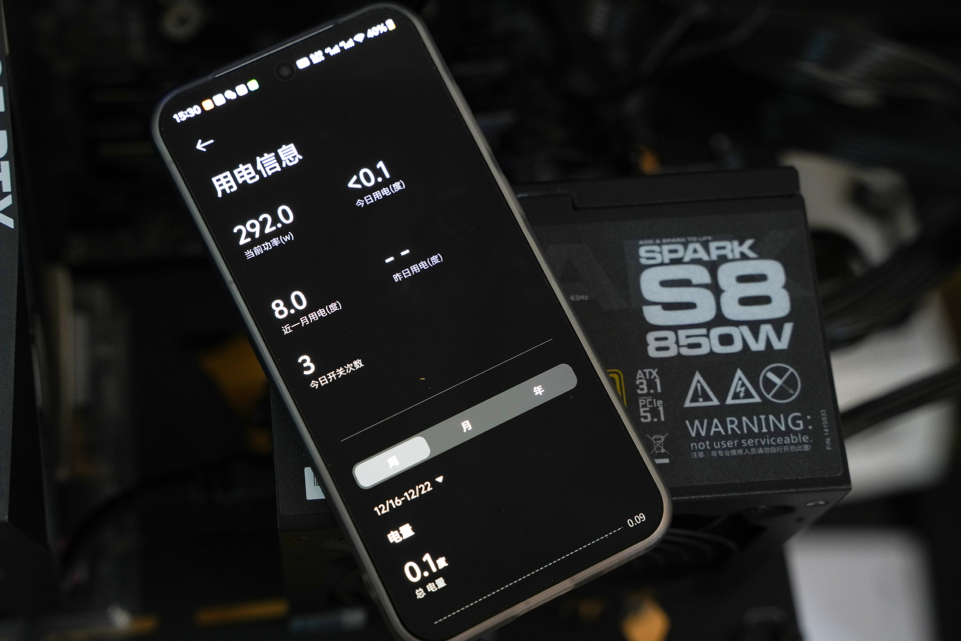 在极限负载测试中,同时开启AIDA64单FPU对CPU进行持续满载压力测试,并运行FurMark对显卡进行满载烤机,模拟CPU与GPU同时高功耗运行的实际极端场景。测试过程中配合小米智能电力插座监测墙插侧整机功耗,实测联合烤机状态下整机输入功耗约为670W左右,功耗输出稳定,未出现明显波动或异常跳变。以850W额定功率计算,此时负载约占电源额定输出的80%左右,仍保留一定功率余量,整个测试期间系统运行正常,电源未触发保护机制,各路电压表现稳定,体现出该850W氮化镓电源在高负载场景下良好的持续输出能力与平台适配余量,也符合ATX3.1对高功耗平台的设计取向。