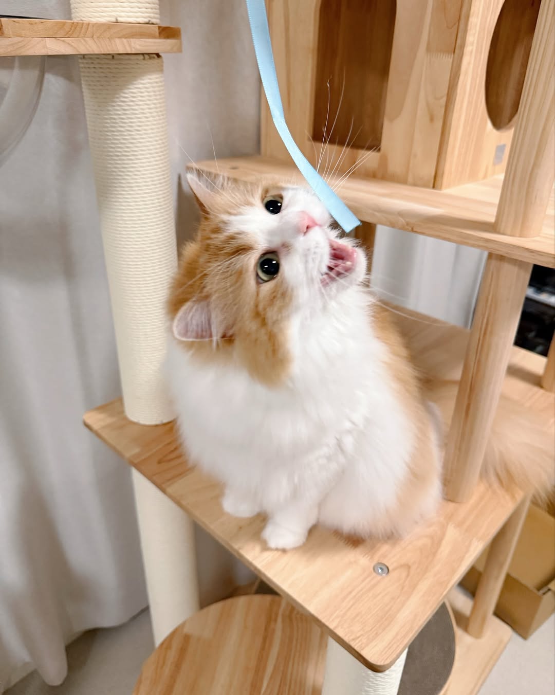 猫咪用叫声表达情绪,但不同于“饿”那种短促喵,这种“跟随式喵叫”通常带点撒娇气息,像是在说: