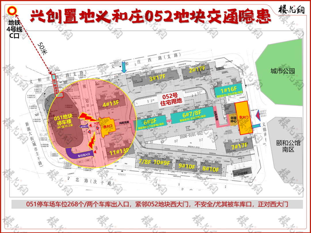 最为关键的是,052地块的西大门与051地块的北出入口,面对面设置,几乎是正对着的。