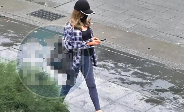 走着走着,她还轻轻抚着自己的孕肚,继续享受着悠闲午后时光。