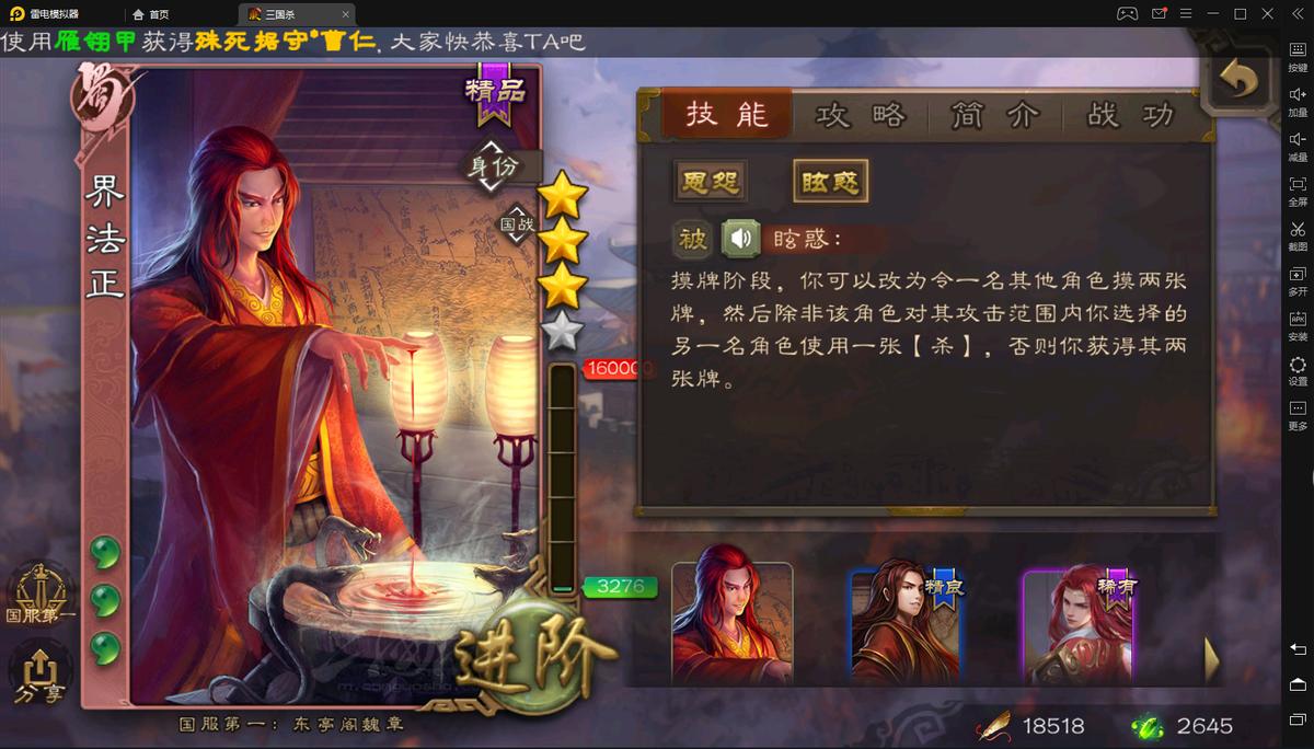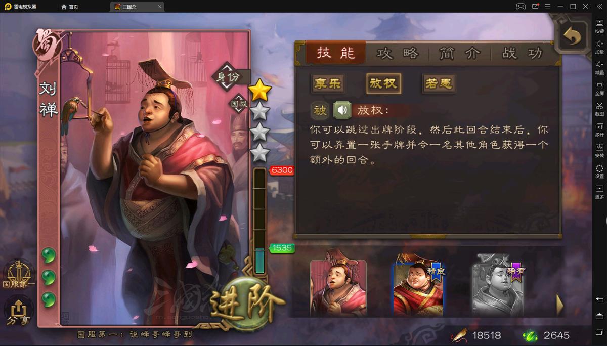 刘禅界刘禅的原理很简单,放权直接不行动,摸一张牌还是两张牌不误事。界法正的原理是技能描述里有放弃摸牌的描述,可以跳过只摸一张牌的描述实现第一回合总共3牌。