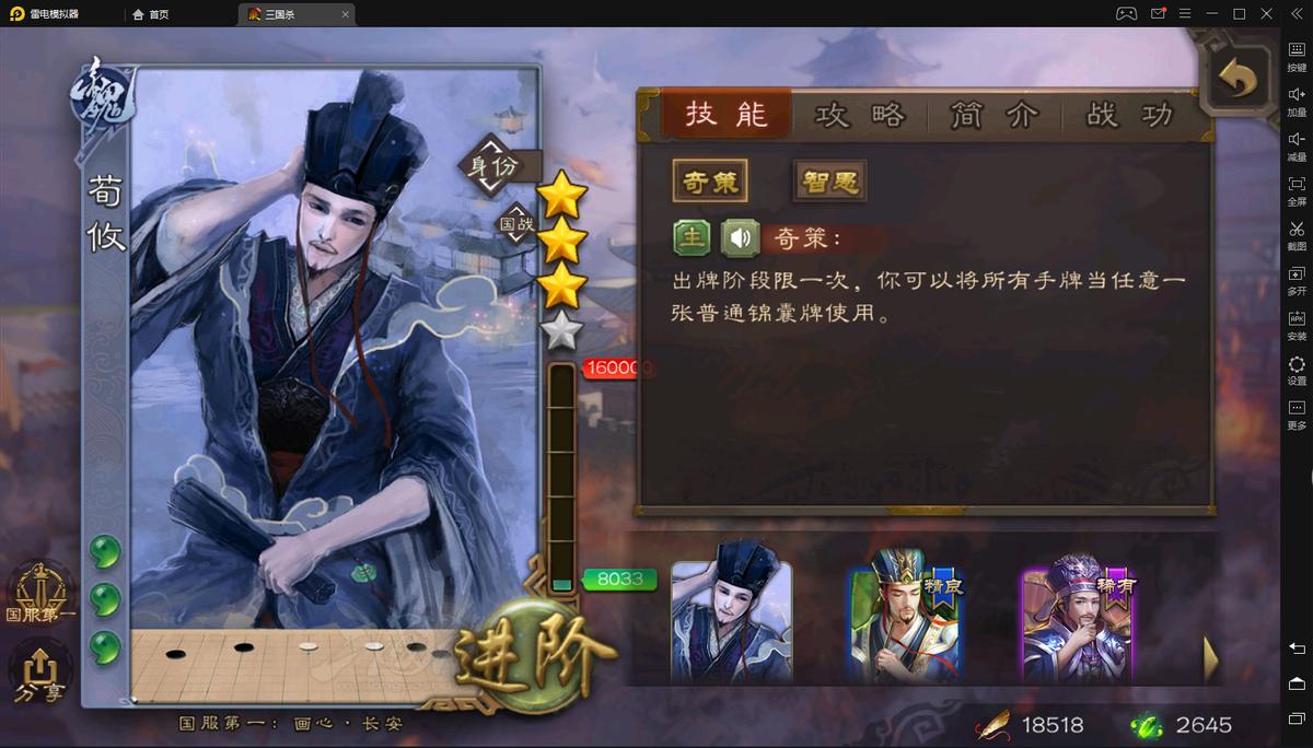 荀攸刘谌跳过1号位规则劣势的方式是一样的,由于技能要用光所以少摸一张牌并不是很误事。这五个武将是目前排位将池中能够跳过规则劣势的武将。其中属于强将的主流武将有界法正,(界)刘禅。界颜良文丑不属于独立强将,属于配合向。刘谌有强度但并不算很高,在强将门槛的垫底。张辽属于强将中游级别,出场率较高。荀攸属于强将,级别足够,出场率很低。