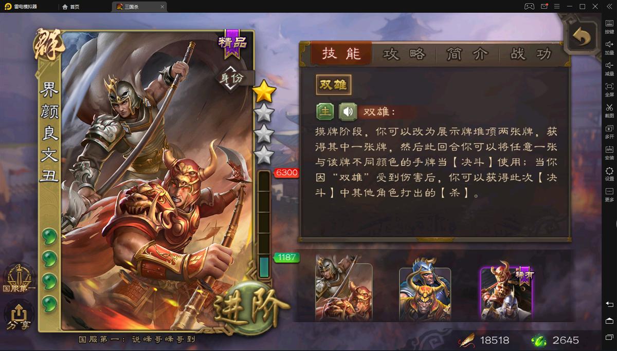 界颜良文丑发动一次技能就是摸一张牌,1号位少摸一张牌的劣势消失。张辽跳过1号位少摸一张牌的方式是技能描述中的改为获得至多两名角色的手牌,所以小编是张辽的忠诚爱好者,毕竟界张辽没办法实现张辽的跳过1号位少摸一张牌收益的操作。