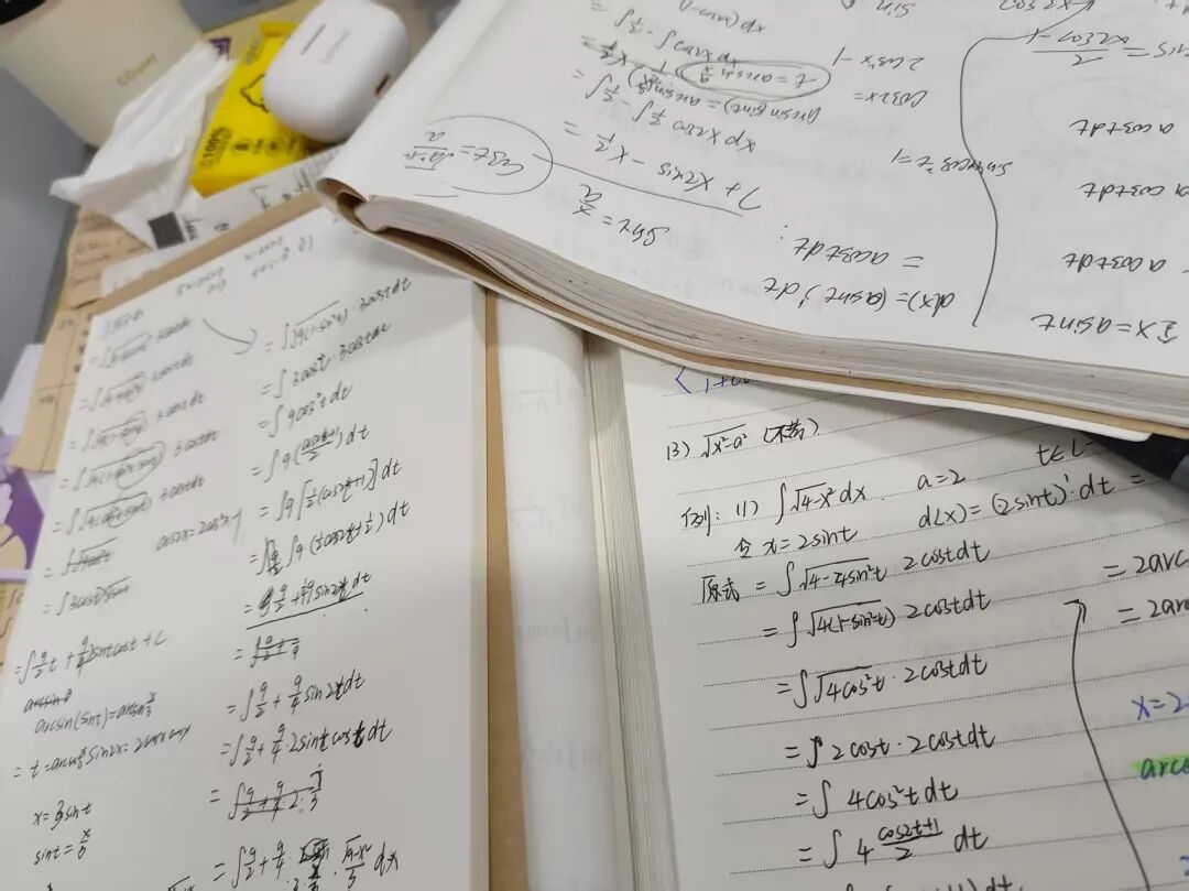 高数:大二期间学校会开设高数课,大家可以选择高数课跟着老师提前学习。我是在大二下学期,先看的导学课之后再从网站上找一些课程跟着学习。公式是做题的基础,要熟练掌握并且灵活运用。整理公式(如导数公式、积分表),我会利用中午时间默写一遍公式。分模块刷,题错题本标注错误原因(如计算失误、公式混淆),隔一周再重新做一次,之后找相同题型的题目加强练习。近5年真题限时模拟,近3年的真题抽出时间当成正式考试去做,统计高频考点,针对性强化。