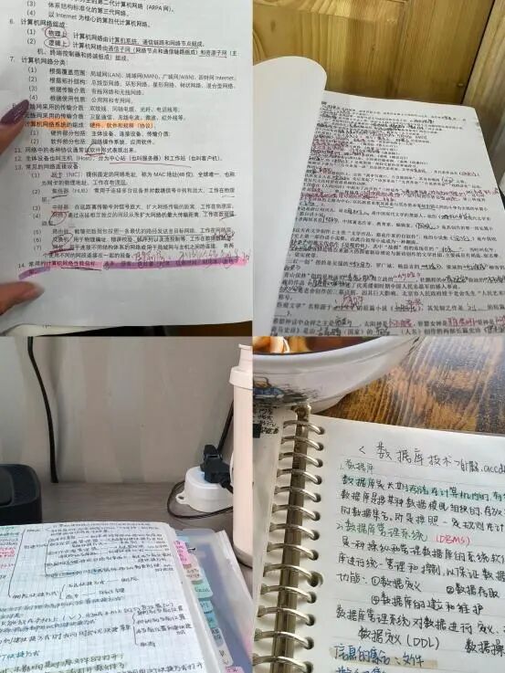 计算机:理论部分,学习新课时课下复盘,每天留半个小时背诵新学的知识(可能后面会忘记但是不要气馁,我背了7.8遍还是有忘记的),多做课后题,多整理多补充没见过的知识点,学会整理思维导图(如计算机组成、OSI模型),对比易混概念(RAM vs ROM、HTTP vs HTTPS)。操作题最重要的是操作不是死记硬背记住固定的步骤。建议大家要利用空余时间用电脑操作练习题。错的题,不会的题需要自己实操之后才能记住,单纯看操作过程过段时间还会忘。