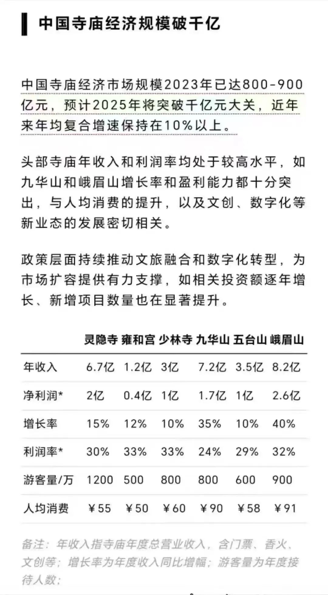 这一规模涵盖了香火收入、旅游经济、周边衍生品销售、宗教活动组织以及寺庙相关投资等多个方面。具体来看,寺庙经济的主要构成包括: