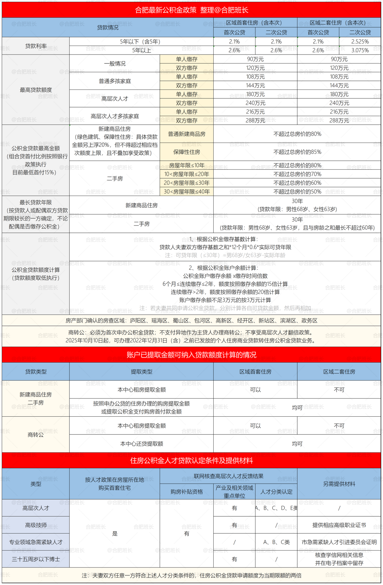 目前合肥公积金贷款政策比较复杂,详细信息可参考下图表格。