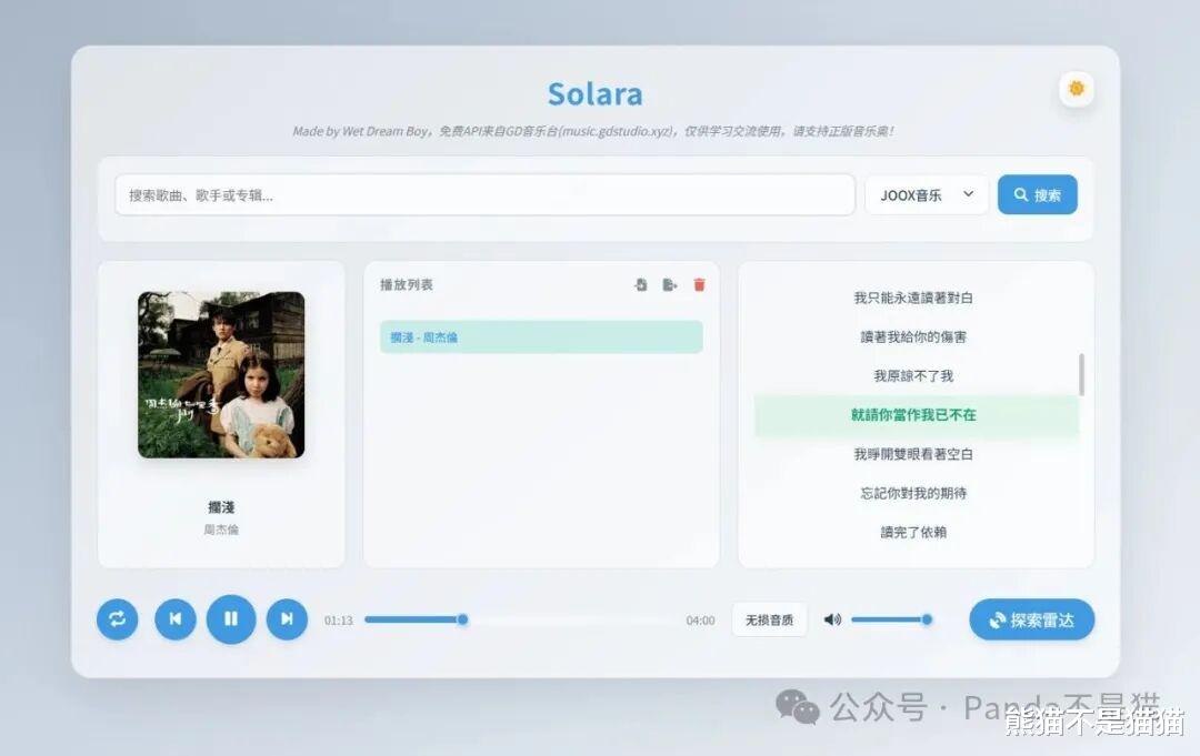 还真发现个新鲜项目,Docker 版本的 Solara 。这玩意儿你就可以理解成一个既能在线播放又能下载的音乐播放器,而且 UI 界面还挺不错。项目代码轻量化,又有内置解析,特别适合临时用来找音乐、下载音乐。开源地址是 https://github.com/xiaosahuogui/Solara-docker,发布还不到一周。