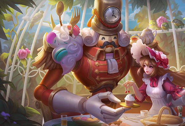 再来说说阿古朵的星元套装——夜趣。这款皮肤以惊奇夜游园会为主题,万圣节元素满满,白菜狗变身菜僵僵,蓝色调设计可爱又神秘。局外展示中,背景月亮和房子营造出奇幻氛围,技能特效以蓝色为主,加入灵魂飘荡效果,二技能滚动球和三技能地面图标都让人眼前一亮。信枫特别欣赏它对野怪的改变,仿佛给野怪也穿了新皮肤,这种细节创新让游戏更生动有趣。