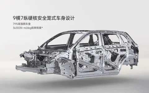 被动安全依托 9 横 7 纵笼式车身,79% 高强钢与 28% 热成型钢(含 2000 兆帕航空级材料)构筑坚固乘员舱,36300N・m/deg 的扭转刚度媲美百万豪车。全车标配主副驾气囊、前后排侧气囊及气帘,C-NCAP 五星评价中乘员保护得分率达 92%。