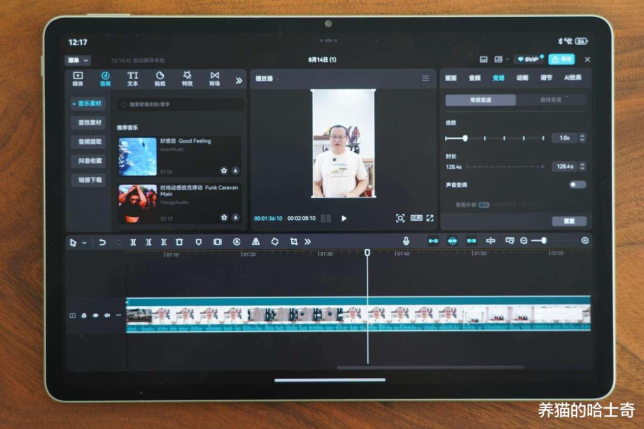 我们再举个例子,剪映专业版,注意是专业版,它在MatePad 11.5 S上可以全轨道展示,跟PC上一样。不仅如此,剪切、复制等基础操作和曲线变速等高阶功能都支持,也提供各类音频、特效、滤镜等素材。