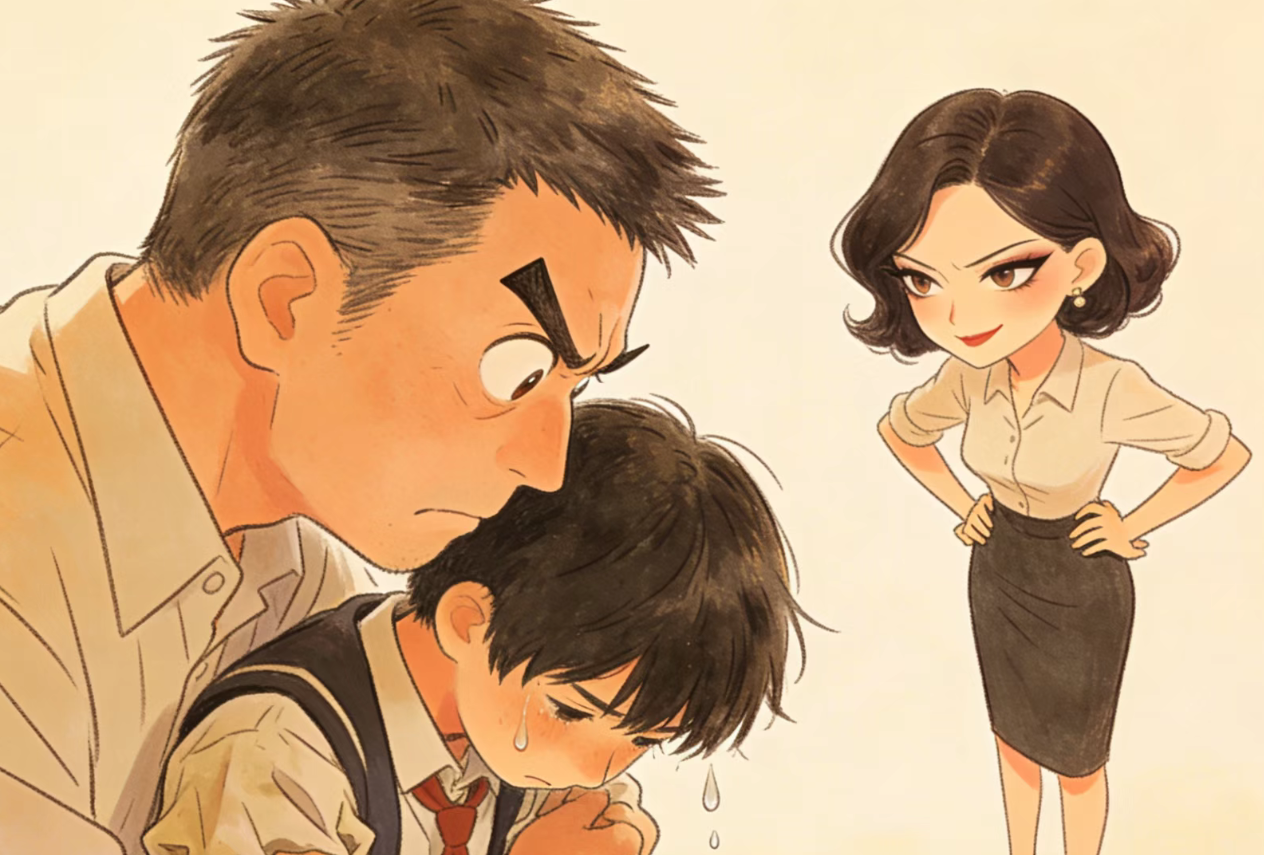 沉默了很久,他终于开口,声音带着哭腔:"爸,老师把我头发剪了。"