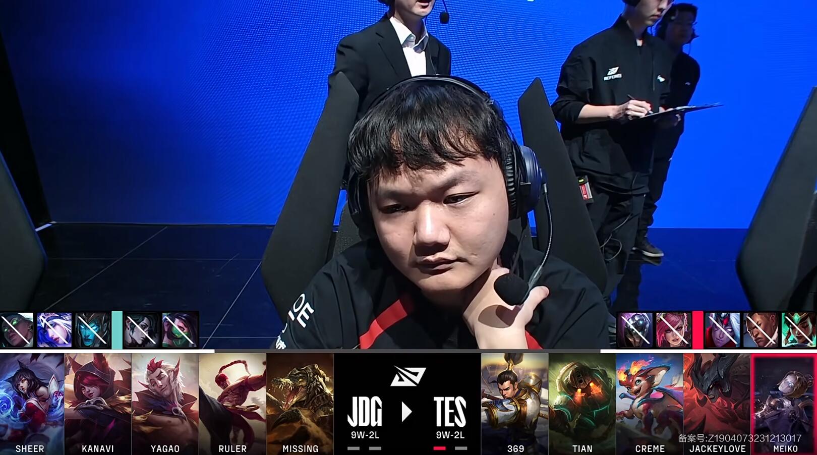 决胜局JDG的BP做得非常聪明,在双方按掉大量AD的情况下一手抢洛给到了自己AD位比较多的选择空间,并且前三手妮蔻、洛、武器下来,TES几乎是必出有一定自保能力的AD了,第二轮甚至凭借先抢的优势迫使TES自BAN掉了可能是他们AD位最优解霞后,在最后一手给尺帝拿到小火龙,本局尺帝小火龙的舞台无限大,TES缺乏稳定先手几乎摸不到尺帝。