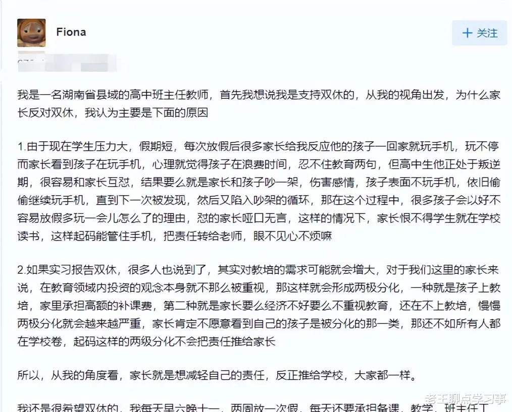 我也理解教育改革需要一个适应过程。家长们长期习惯的模式突然改变,确实需要时间调整。学校可以在过渡期提供更多指导,比如开放自习室、图书馆,举办丰富的周末活动,或者提供家庭教育指导。