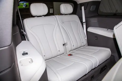 坐进车里最先感受到的就是空间底气,轴距超3米,三排都不挤。180cm的人坐第三排,膝盖离二排还有两拳距离,不会蜷腿;头部也不顶车顶。储物更是贴心,全车46 处储物空间,二排有专门的遥控器收纳槽,副驾密码手套箱能放重要物件,小孩玩具、大人水杯各有归处,车里不会乱糟糟。座椅质感更是直观,NAPPA真皮摸着手感细腻,不像硬邦邦的仿皮,夏天坐也不闷汗。中排座椅能电动调14个方向,腿托能伸能调,长途坐久了也不酸;副驾零重力座椅是惊喜,靠背放倒、腿托伸开,整个人像 “浮” 着,开长途换着坐,疲劳感能少一大半。要是全家出行,满员6人还能装6个行李箱加背包;露营时后排放平就是1米8多的大床,可以开3.2㎡天幕看星星;旅途无聊了,17.3 英寸吸顶屏连网就能看电影,这才是把 “舒服” 落到了实处。