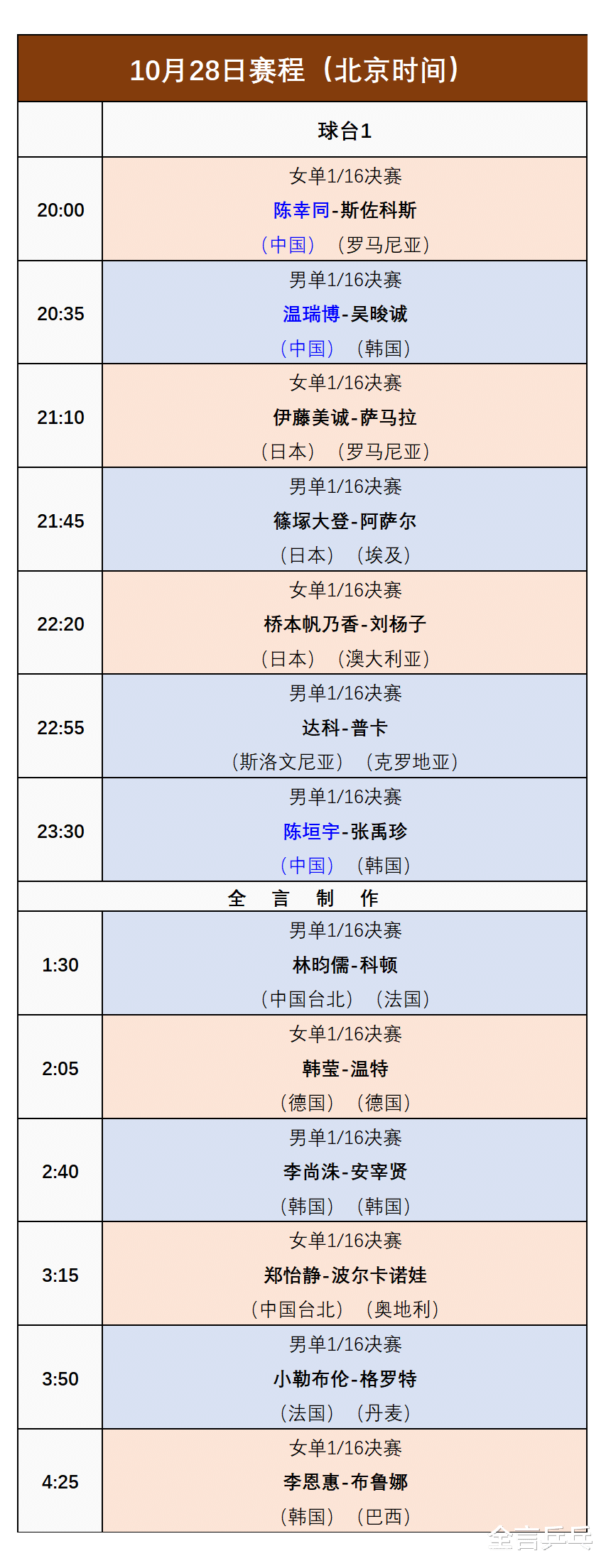 21:10,伊藤美诚(日本)VS萨马拉(罗马尼亚);