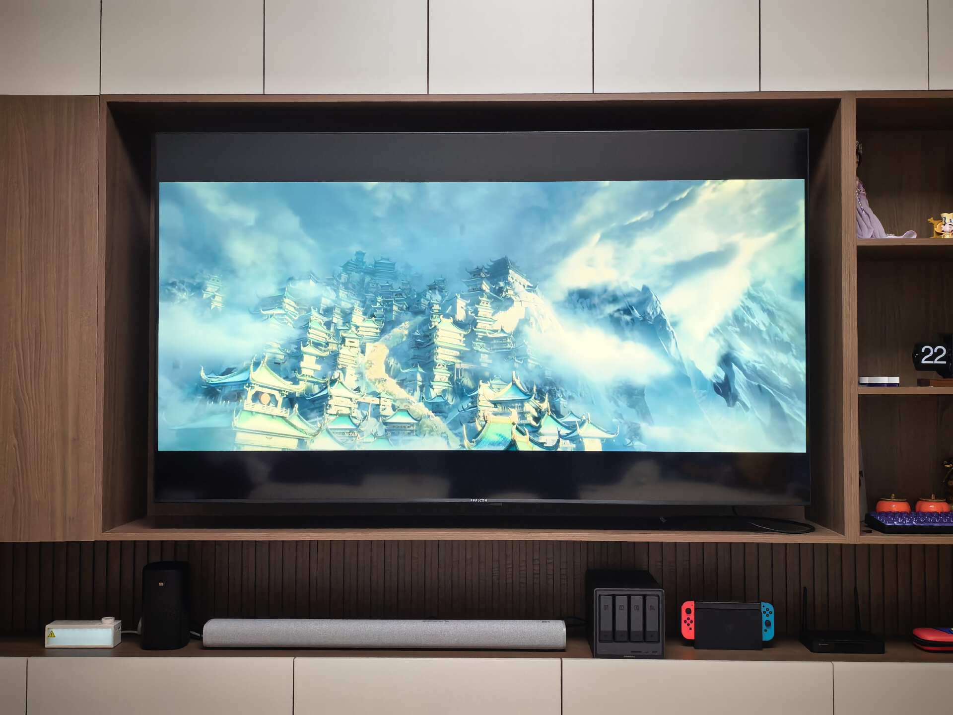 ▼「万象分区」更是TCL断档式领先的技术,能够实现「一区顶多区」背光控制的效果。「万象分区」这个技术讲起来比较复杂,简单类比的话,就像是华为自研芯片+自研系统才能实现鸿蒙系统的系统级底层调用。TCL华星掌握液晶面板的全链路技术,通过技术自研整合「聚核光芯」「新一代聚光微透镜」「微距OD」「23bit双向动态控光算法」「超动态光影仿生算法」5大环节,才实现了「系统性的全链路精准控光」。配合TCL华星的高端HVA面板,不光有效的改良了VA面板可视角度一般的问题,7000:1的对比度,让画面中的黑色黑的更纯粹,而且响应速度也相当出众,在游戏的拖影表现上甚至能够与Fast IPS面板不分伯仲,在客厅大屏上玩游戏也超爽。