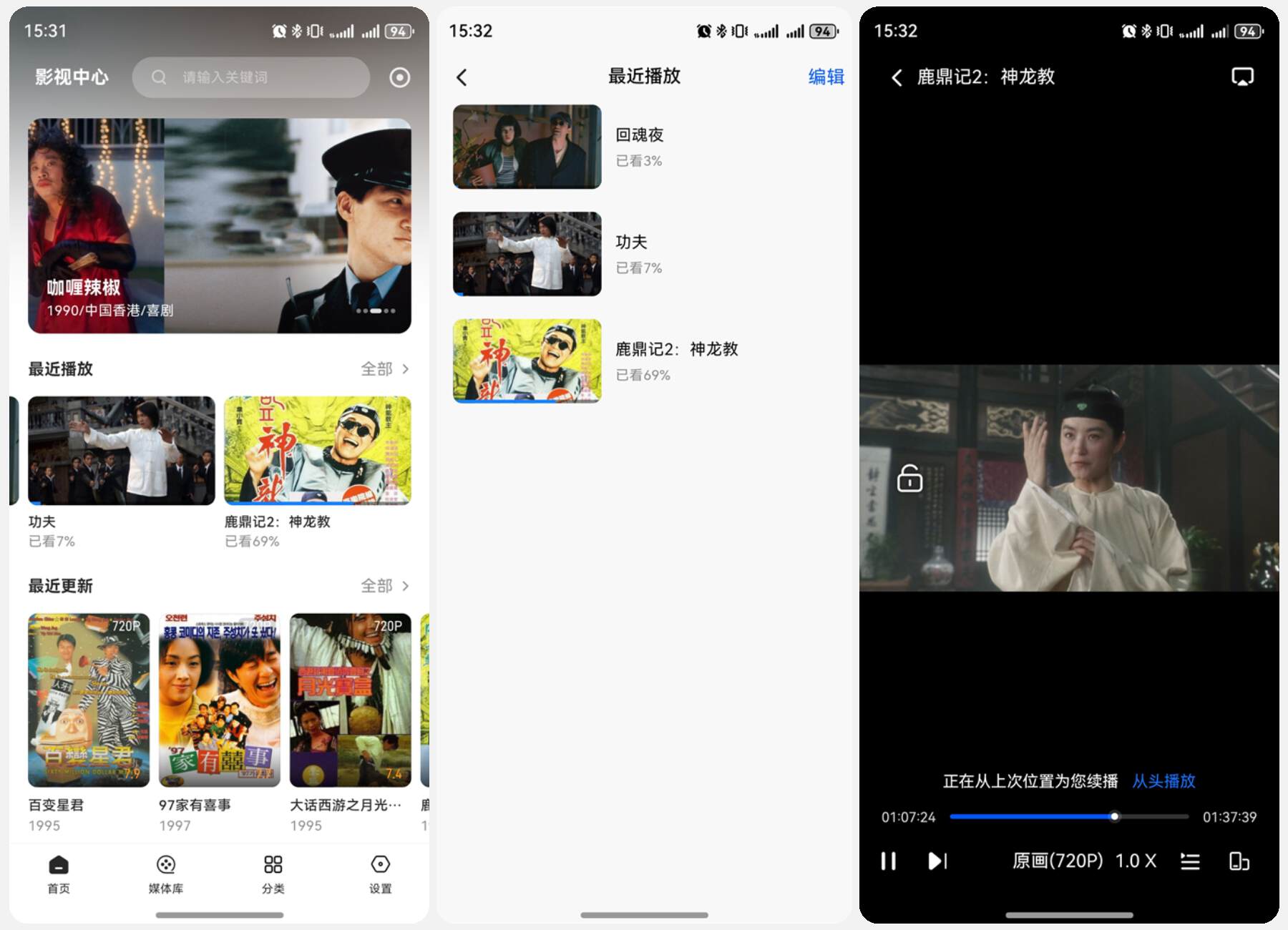 ▼四种模式中我最新喜欢的是模式②,「继续观看」功能可以无缝对接上次的观影,在也不用在TV端打开APP之后再去翻找「最新更新」可以对绿联NAS中最近下载好的内容进行定位,「我的收藏」里面存放百看不厌的周星驰、成龙合集以及孩子爱看的动画片,效率最高。