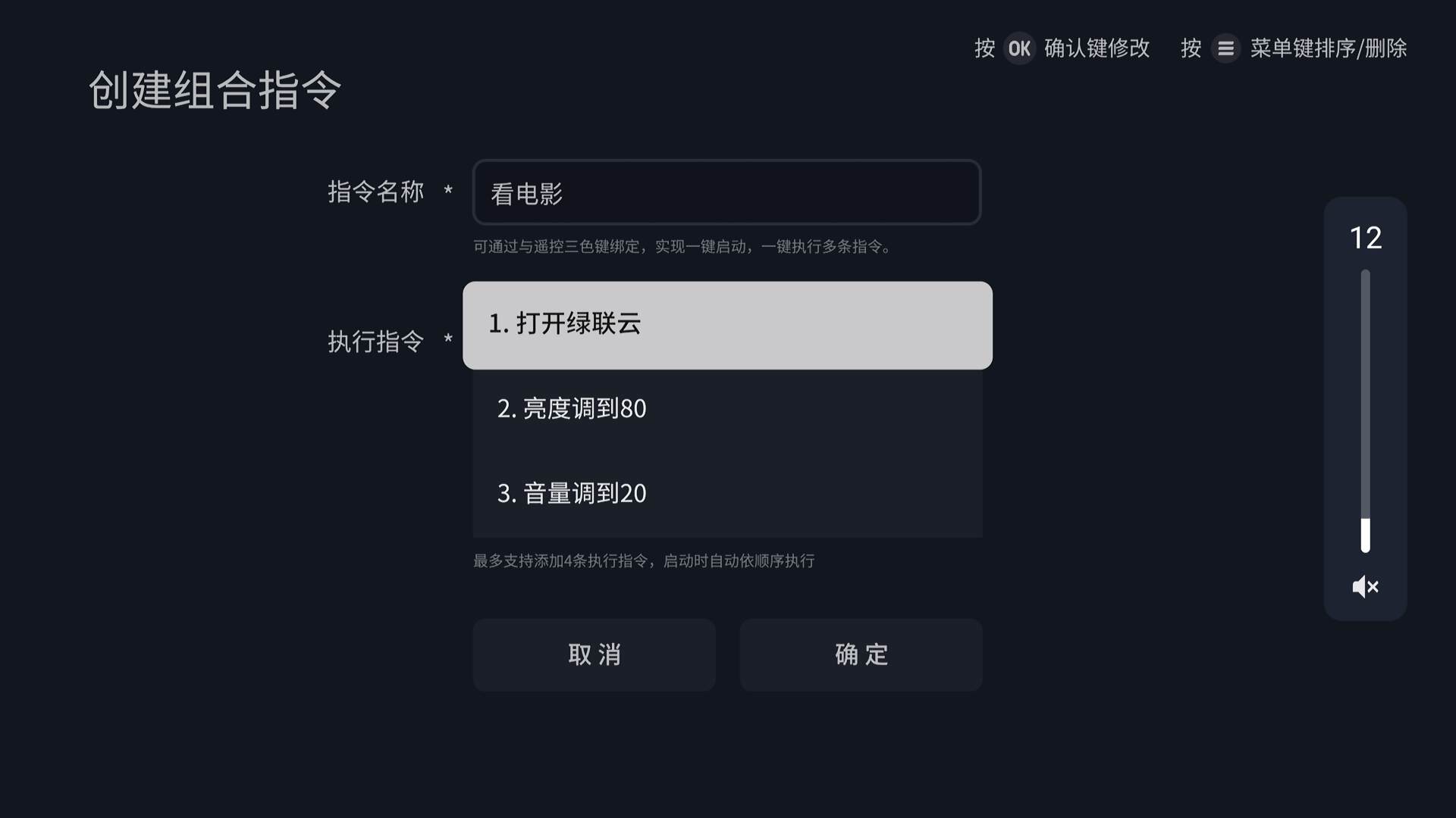 ▼观影的时候还可以使用自定义按键进行多种指令组合操作,一键打开绿联云App+将电视调整为IMAX模式,再把屏幕亮度、音量调整到最适合自己观影的状态,彻底减少为追求高品质观影进行的人工操作。