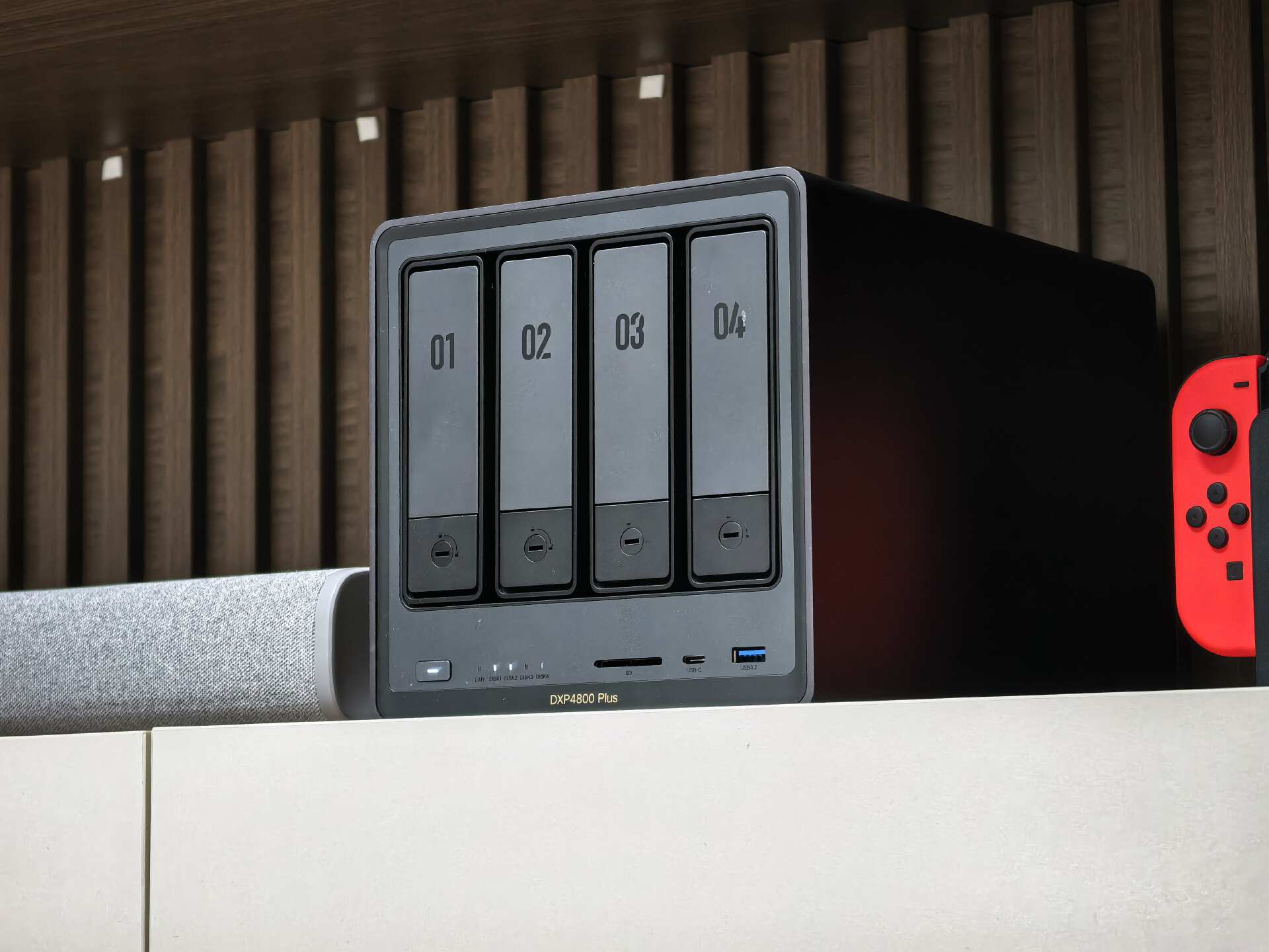 ▼绿联DXP4800 Plus则是一款面向中高性能需求用户的高性价比万兆NAS设备,搭载Intel奔腾Gold 8505处理器,相比前代性能提升50%以上,配备1个10G万兆网口和1个2.5G网口,并且支持双M.2 SSD插槽与4个3.5英寸硬盘位,可实现高达1.1GB/s的读取速度和900MB/s以上的写入速度。在视频剪辑、大型游戏存储、RAW照片处理等高带宽场景中表现卓越,能给用户带来「本地硬盘级」访问体验。