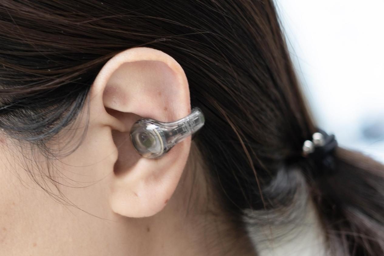 佩戴:设计简约,耳夹部分采用亲肤硅胶材质,触感柔和,单耳重量适中,短时间佩戴无压力。但若长时间使用,耳廓可能会略有压迫感。日常办公、通勤佩戴稳固,但在剧烈运动中可能会稍有滑动。