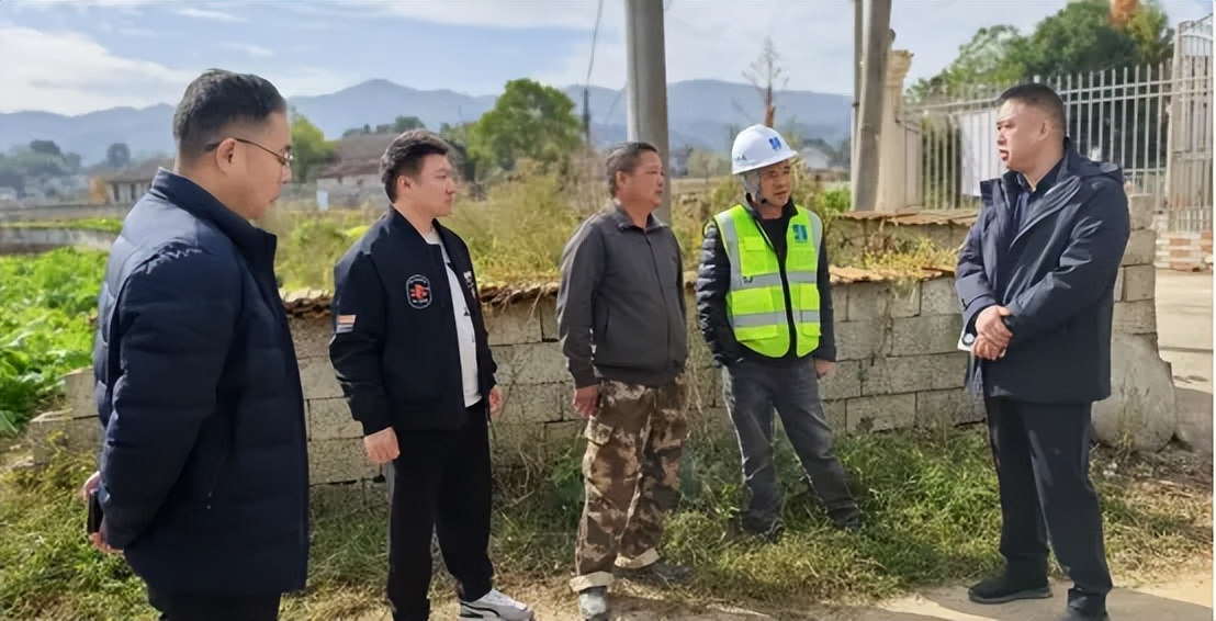 桃江县农业农村局副局长李向辉(右一)与施工方和村干部交流 胡卫红 摄